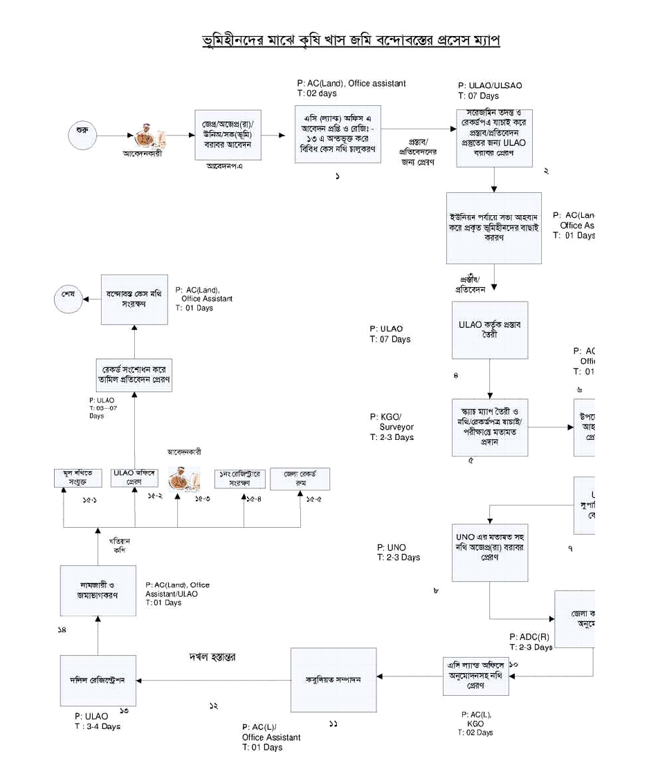 ভূমিহীনদের মাঝে কৃষি খাস জমি বন্দোবস্তের প্রসেস ম্যাপ